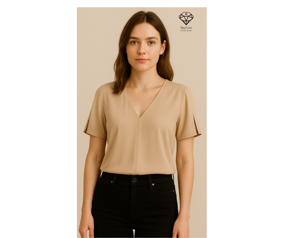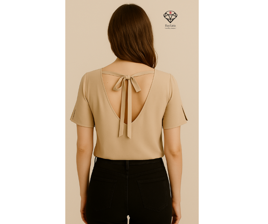 BayLisia Tie Back Blouse With V Neck Made In The USA