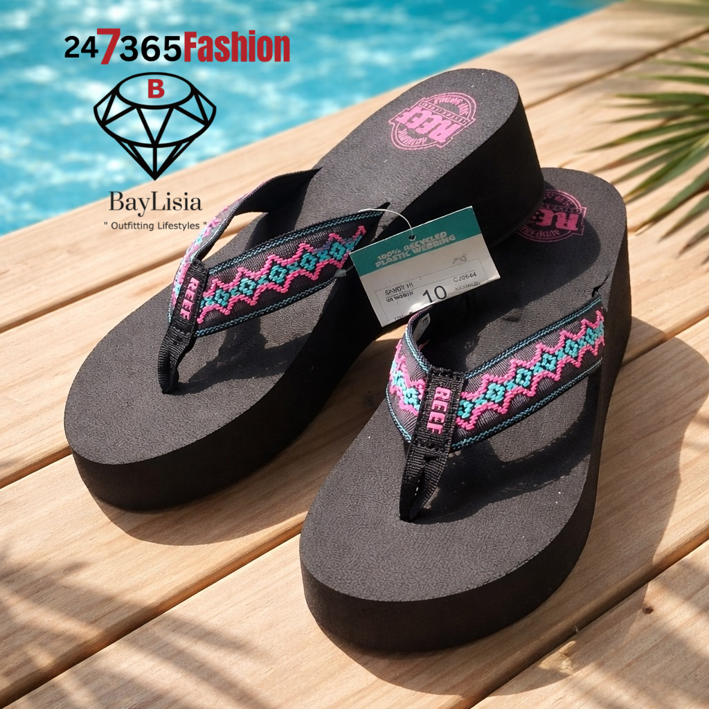 Reef 24/365 Platform Flip-Flops Sandals Size 9 (Black + Pink/Teal Woven Strap)