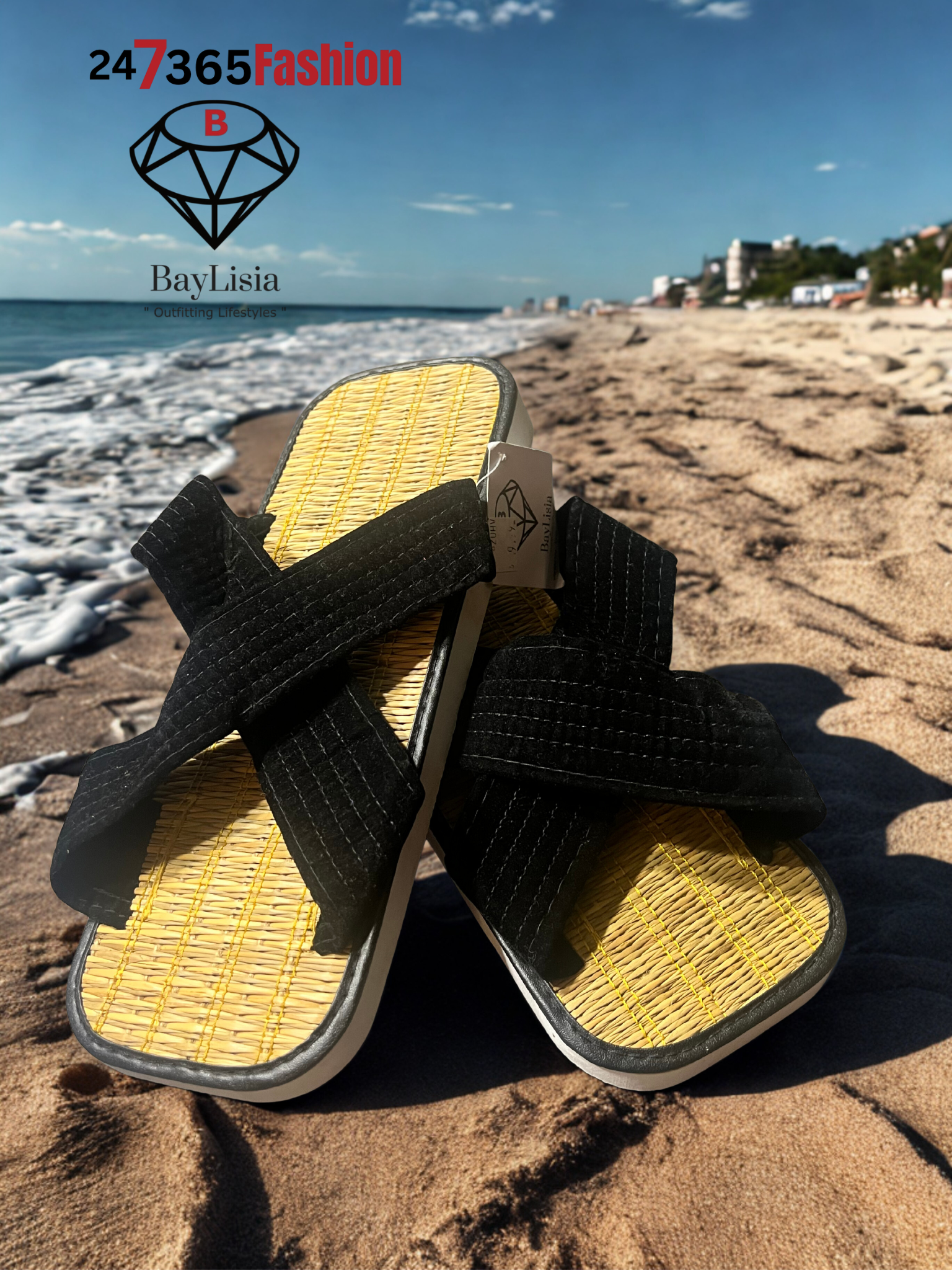 BayLisia 24/7/365 Woven Comfort Cross-Strap Slides (Black) Size Size 10