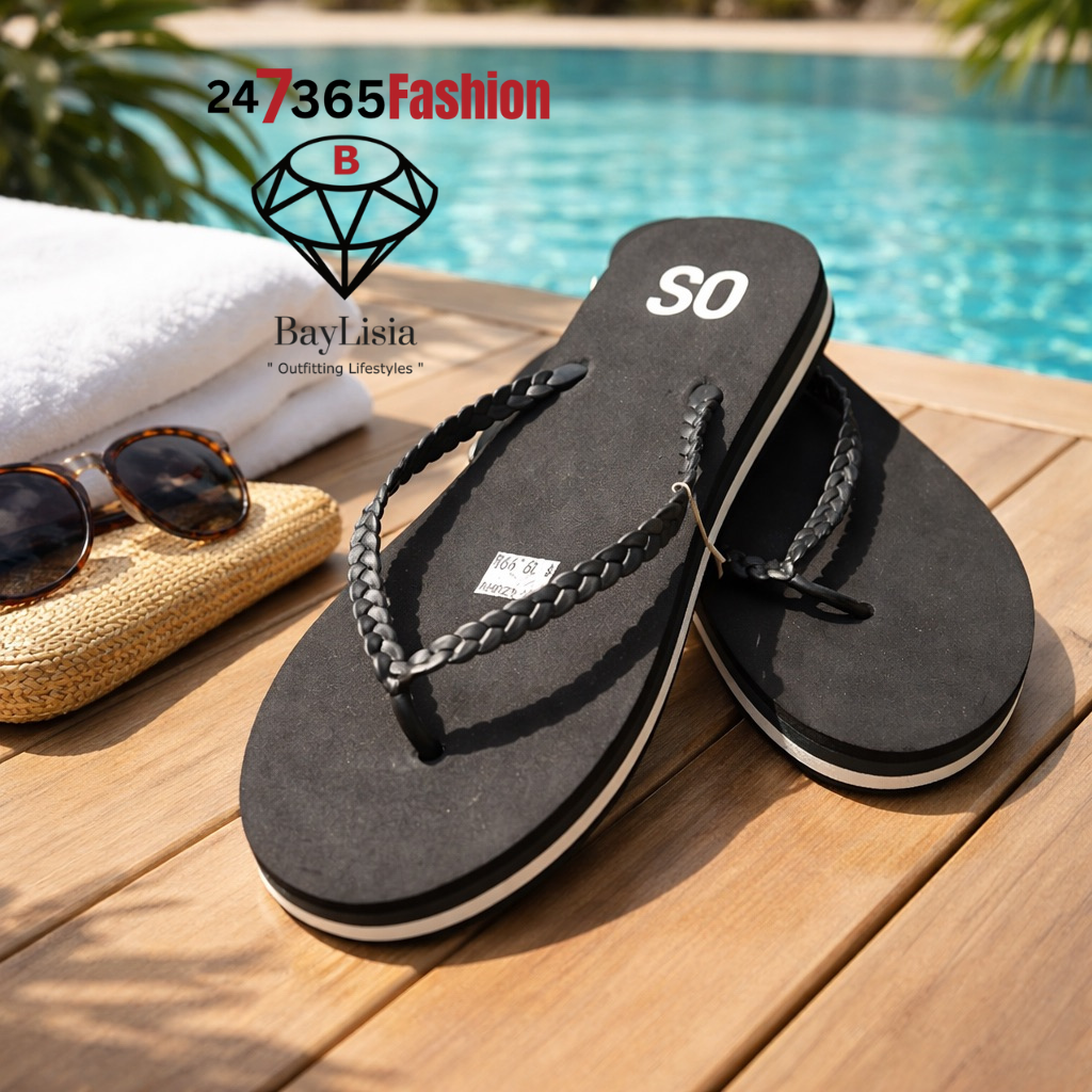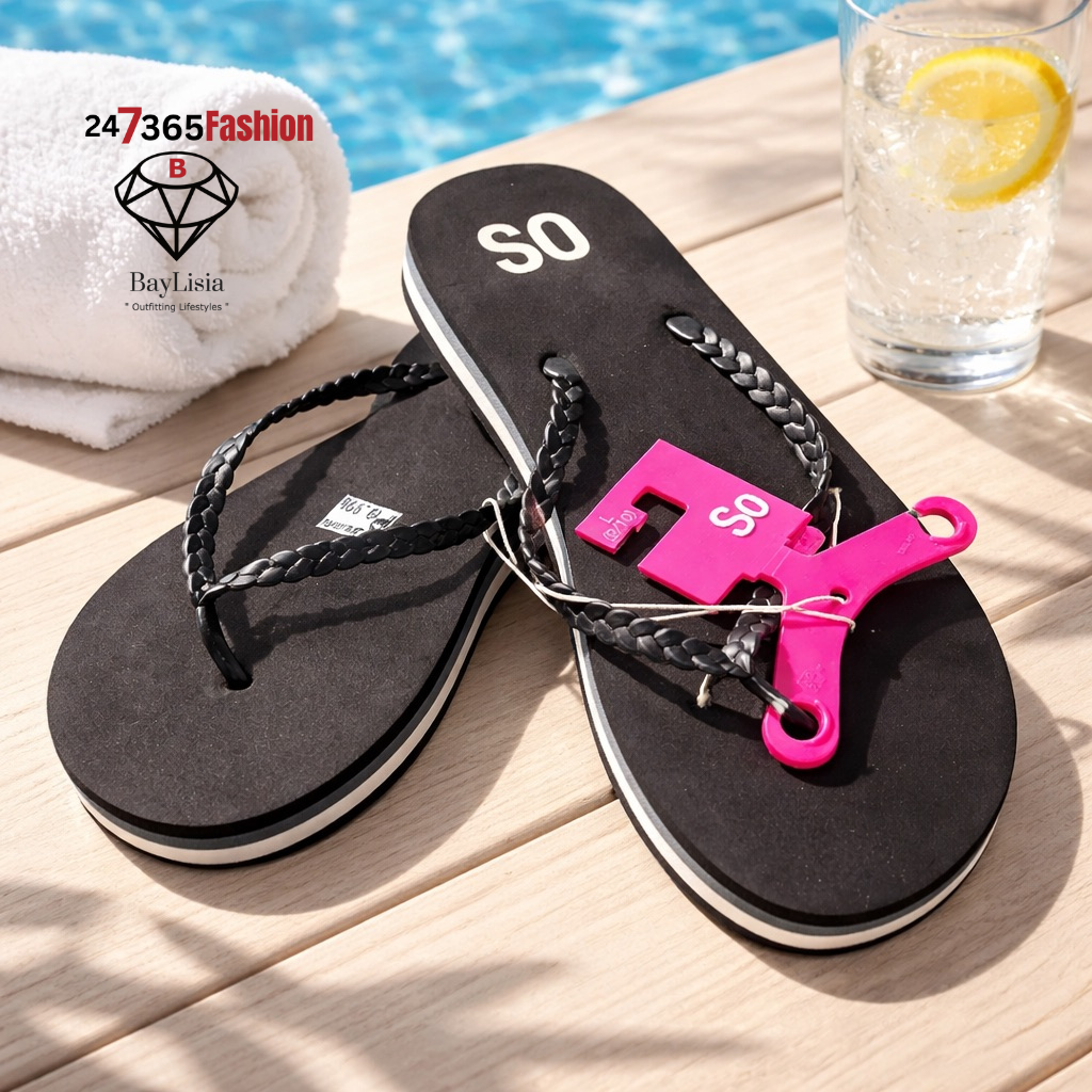 BayLisia Black Braided Flip Flops (Poolside Chic) Size 10